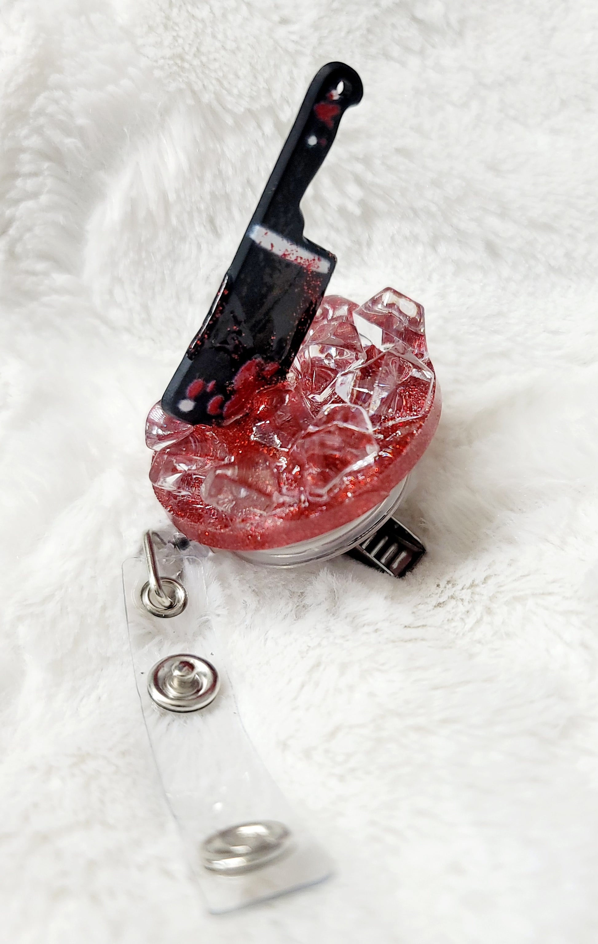 This is a handmade badge reel. This is perfect for the avid horror fan. This has a rotating claw clamp on the back.