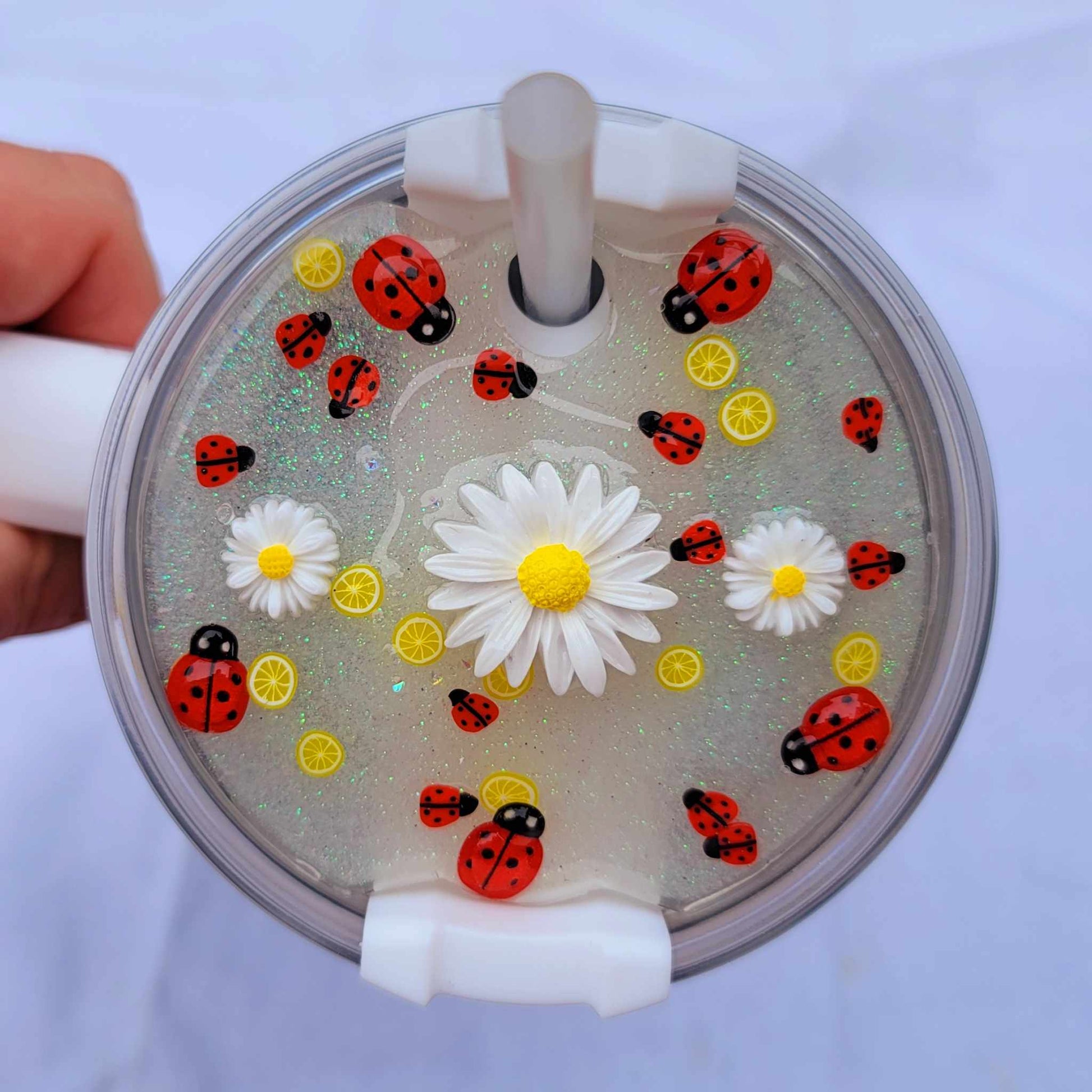 This is a handmade lid cover. This is perfect topper for spring and summer. This is made specifically to fit your Stanley style tumbler.