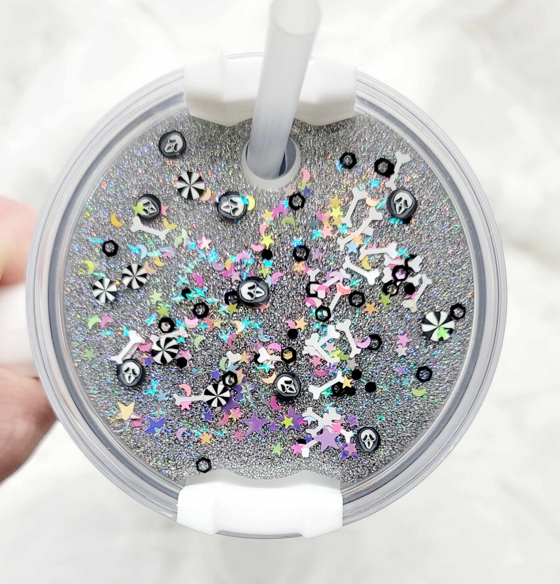 This is a handmade lid cover. This is a perfect mix between summer party and spooky season. This is specifically made to fit your Stanley styler tumbler.