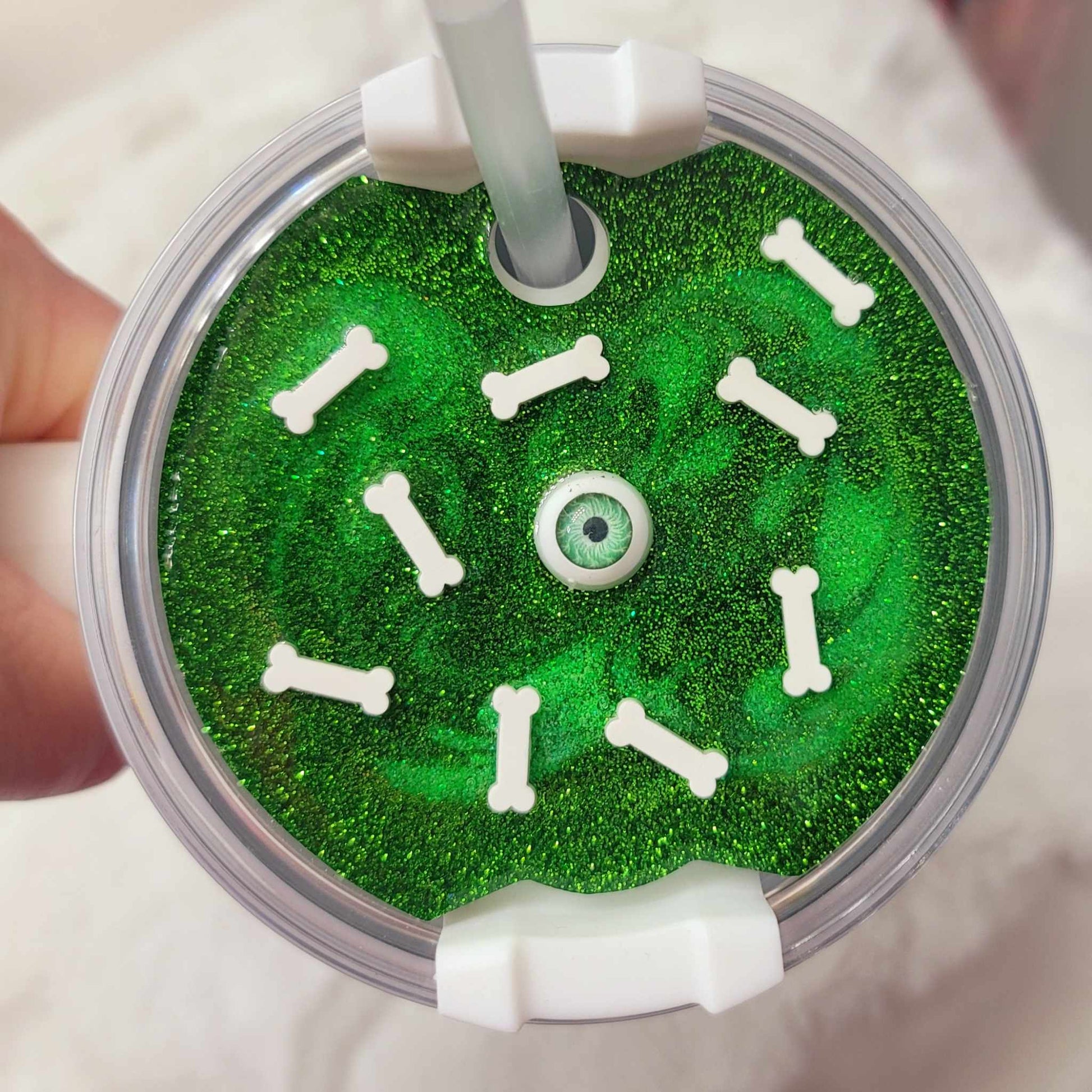 This is a handmade lid cover. This is another spooky creation for the upcoming Halloween season. This is made specifically to fit Stanley style tumblers.
