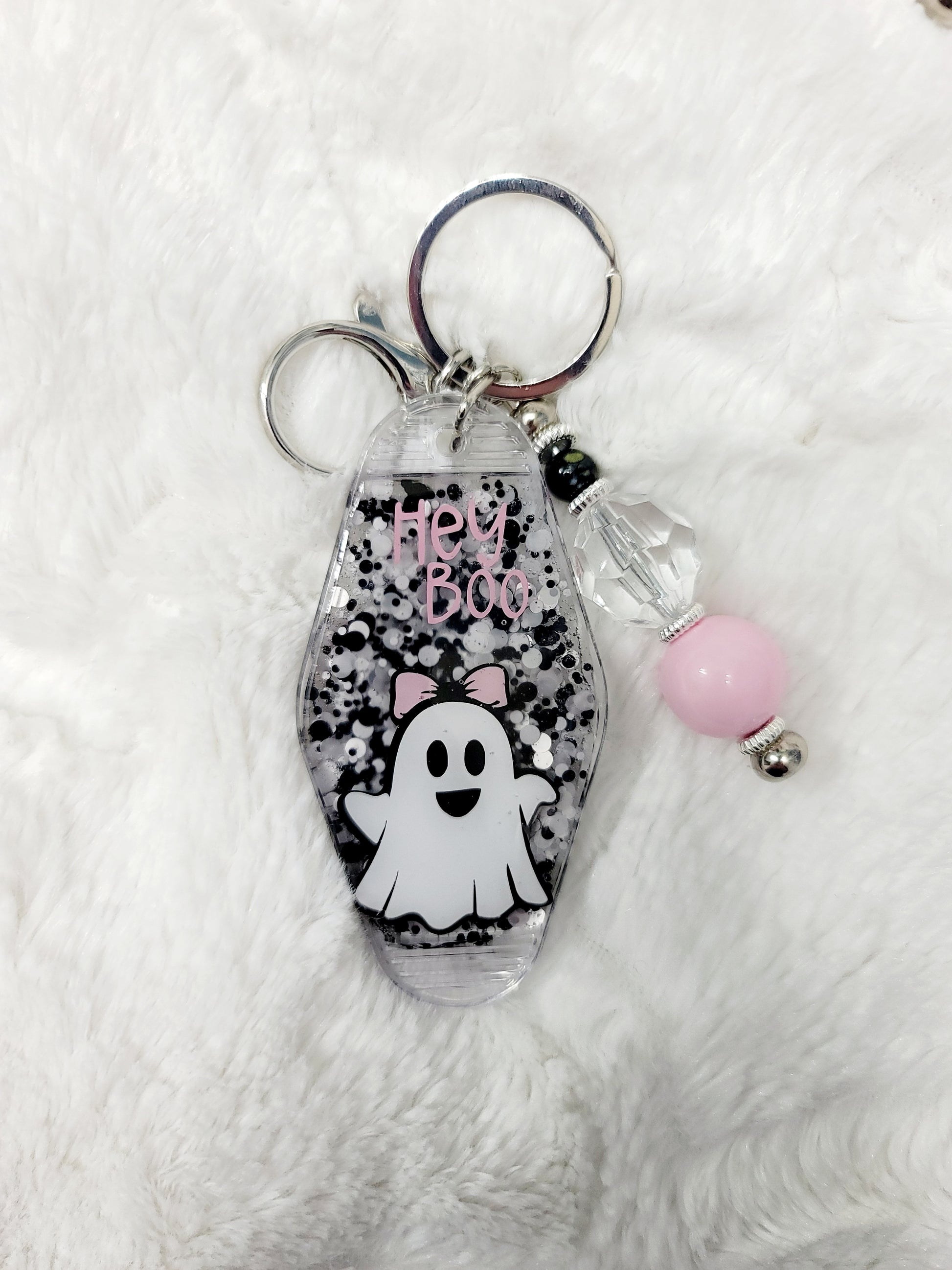 This is a handmade keychain. With Hotel keychain vibe but beaded and cute!