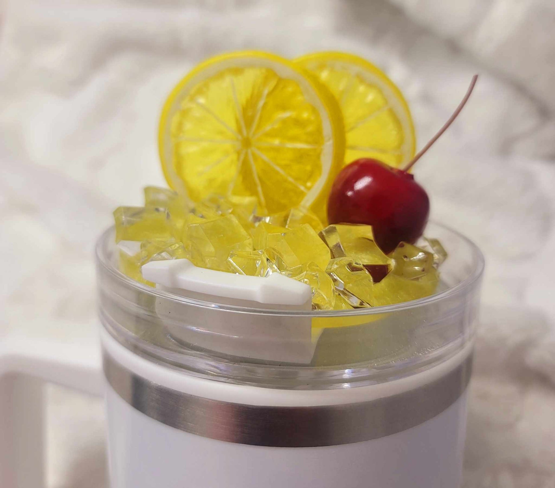This is a handmade tumbler topper. This is made specifically to fit a Stanley style tumbler. This is made to fit a 40oz tumbler.