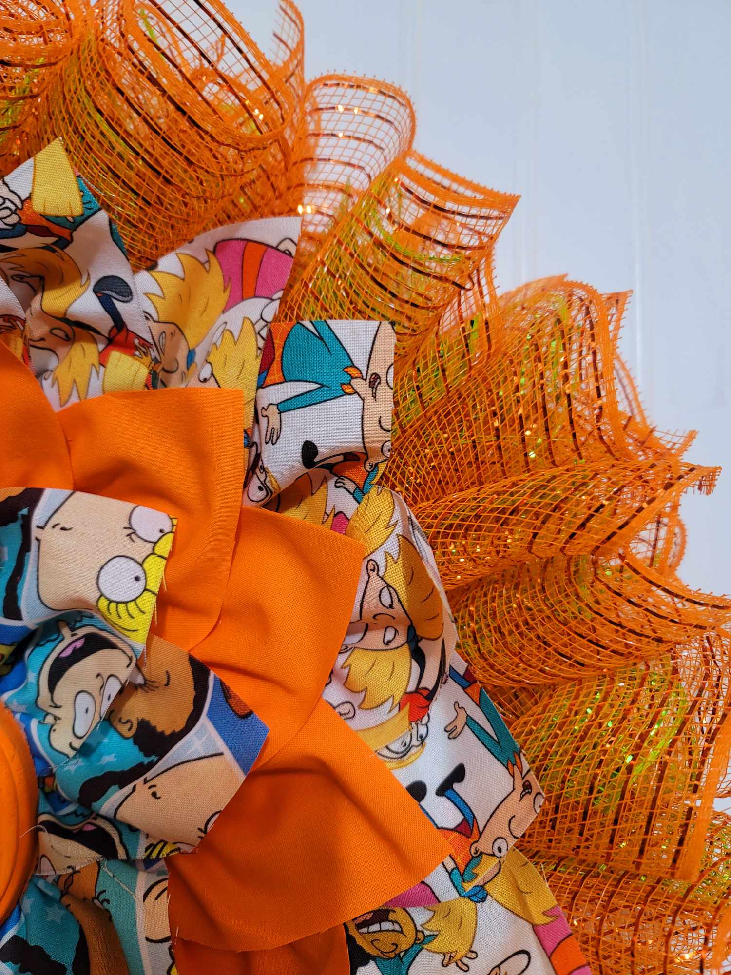 This is a handmade fabric wreath. Made in your favorite childhood nostalgic theme.