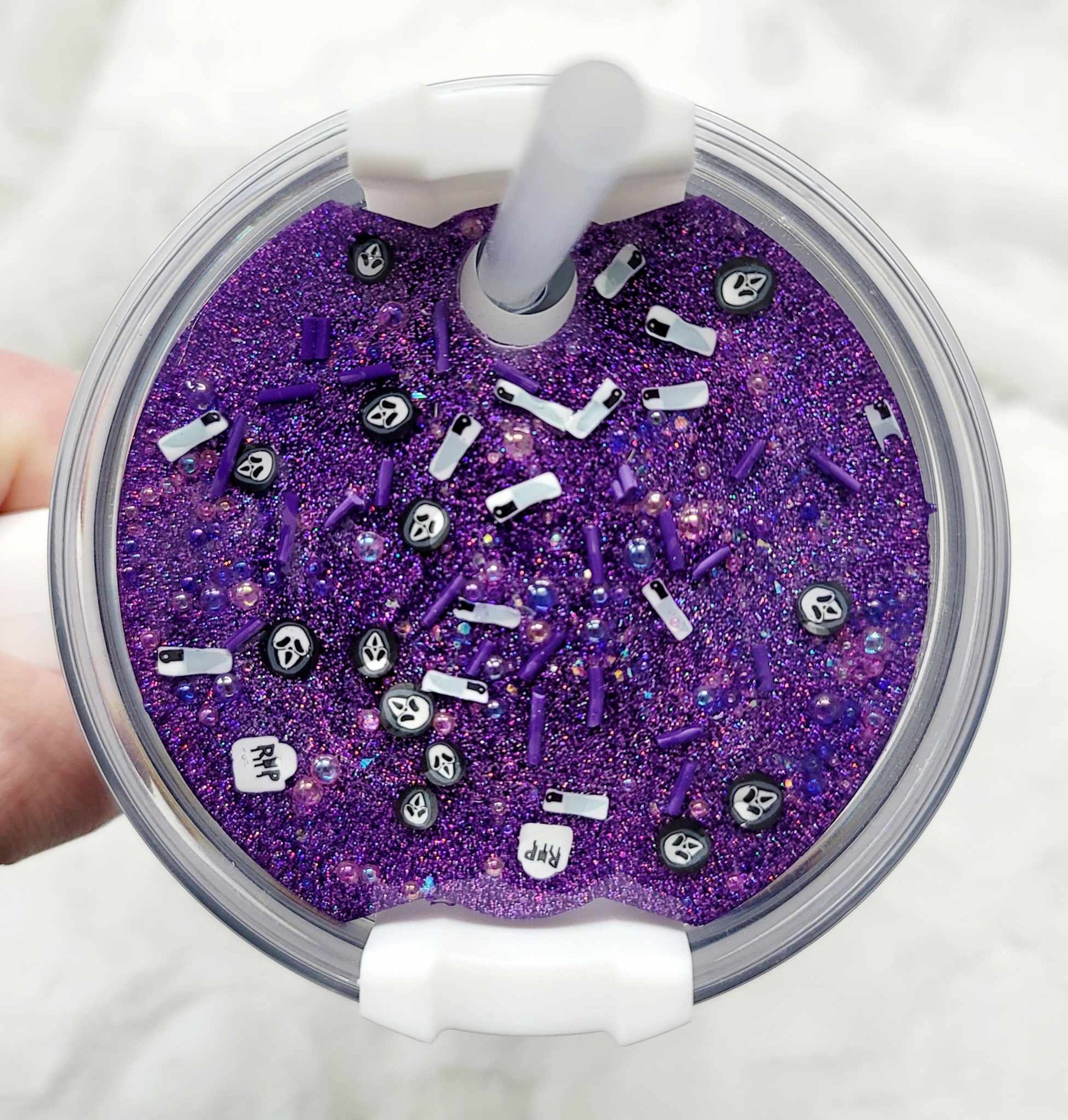 This is a handmade lid cover. This is packed full of glitter and rhinestone with a spooky kick. This is specifically made to fit your Stanley style tumbler.